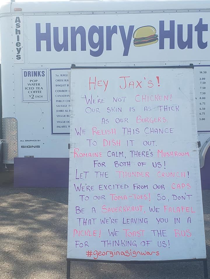 Food trucks (or chip trucks) are a fixture of any Ontario road trip, and Georgina has plenty to choose from. Whether you're seeking poutine, burgers, hotdogs milkshakes, fish and chips, ice cream, or just about anything deep-fried (pickles!), you'll find it at one of Georgina's many spots. There are even friendly rivalries between them - like the punny (you know we love our puns) #goerginasignwars between Jax's Redbus and Ashley's Hungry Hut.