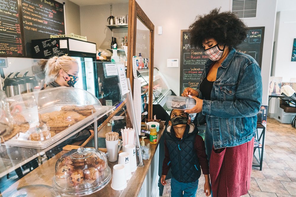 Swing into the Blue Dog Café for a hot or cold brew and some baked goods, like their gluten-free cookies and squares. Admire featured artwork by local artists displayed throughout the café and relax under the shade of the patio umbrellas for a delightful start to the day.