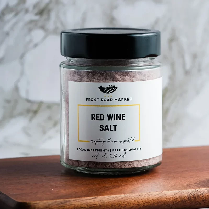 This RED WINE SALT infuses kosher salt with red wine from Blueberry Hill in Norfolk County.