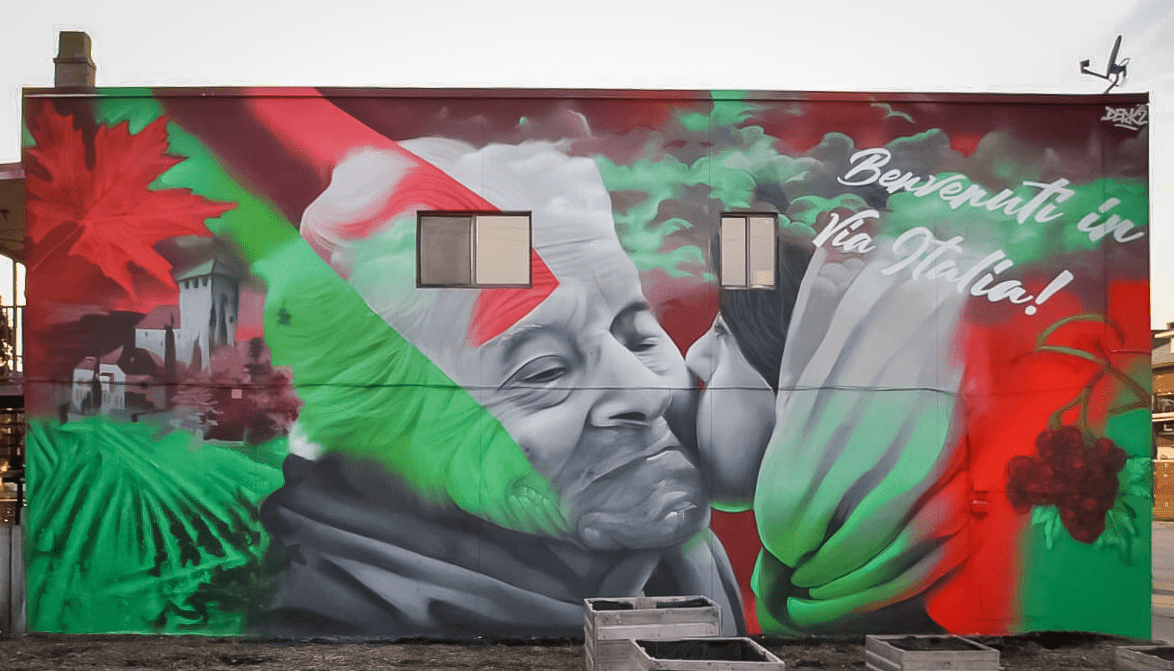 In addition to the Nonna’s Shopping List launch, Tourism Windsor Essex also unveiled a mural on the walls of the Erie Street Community garden located at 1015 Erie Street East. Created by David Derkatz (DERKZ), a multidisciplinary artist from Windsor who specializes in large exterior murals using spray-paint, the mural’s colour scheme reflects the Italian flag and an aspect of the Italian homeland featuring a village and vineyard. The portraits of the Nonna and granddaughter connects the old with the new, and provides a stunning backdrop for some Instagram-worthy photos!