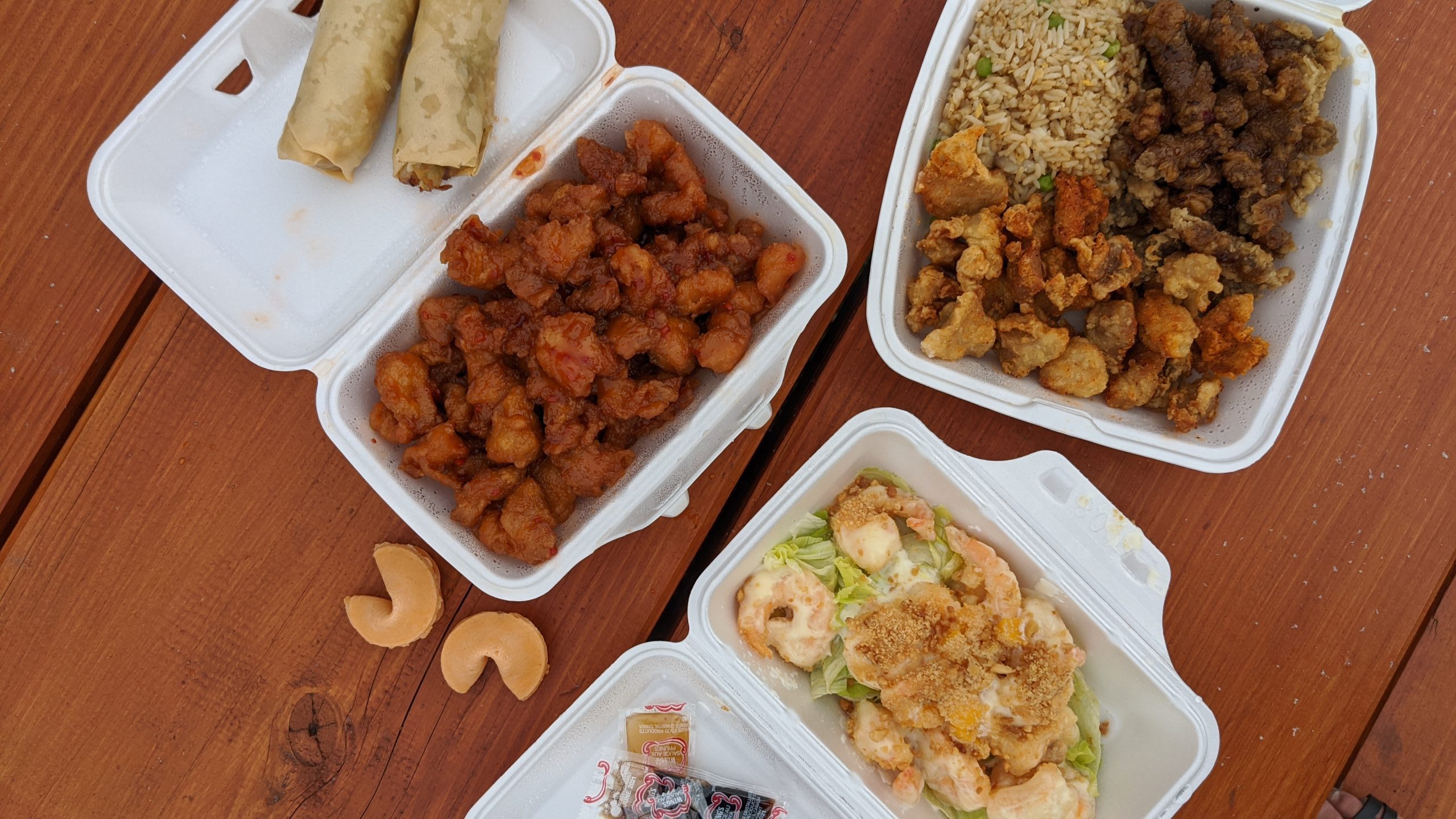 This weird but lovely restaurant has a long history in the region. We know people who have been boating up and picking up crispy ginger beef and Chicken Gai Ding since they were children. You can read more about this local favorite here. As of April 15, they are open for takeout and delivery only.