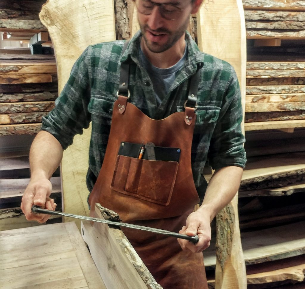 “I’m looking for a different tree than someone building a home. These knobs and scars are what make our boards special” he says while pointing to a particular gnarly cherry tree he’s had his eye on for months.