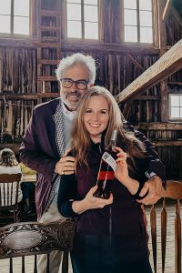 Gunn's Hill aging room photo with Shep walking down a row of cheese